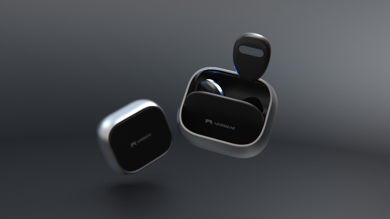Two small buds, one in each hand. You feel the pulse before you hear it — because there's nothing to hear. It's pressure, not sound.